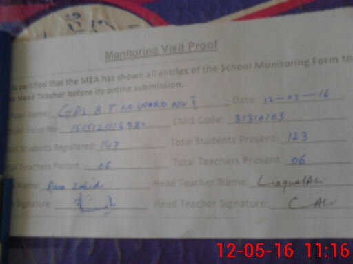 | EMIS Code: 31310103 | Name of School: GPS B.T.M WARD NO 1 KHAN PUR | |||
