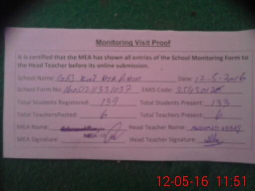 | EMIS Code: 35430126 | Name of School: GES KOT DIYA RAM | |||
