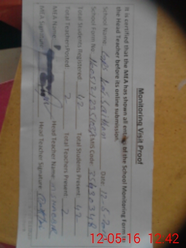 | Certified that this School was Inspected by the Undersigned MEA/DMO Today and the Information Stated Above is as Per Record. | |||||