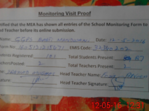 | EMIS Code: 32340202 | Name of School: GGPS BASTI MANDWANI | |||