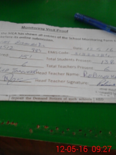 | Attendance Register | Head Teacher | MEA with School | Visit Proof |