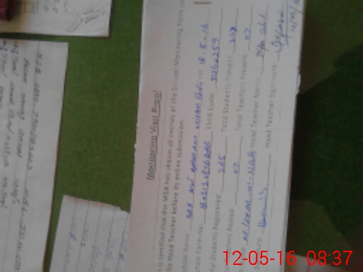 | Monitoring Date: 12-05-2016 | Start Time: 12-05-2016 08:15 AM | End Time: 12-05-2016 08:39 AM | Name of MEA: Mu**** Iz**** UlHa**** | |