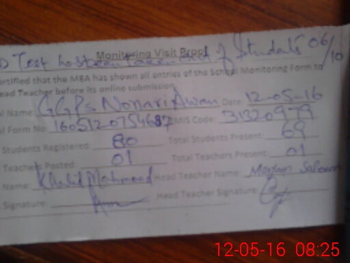 | Certified that this School was Inspected by the Undersigned MEA/DMO Today and the Information Stated Above is as Per Record. | |||||