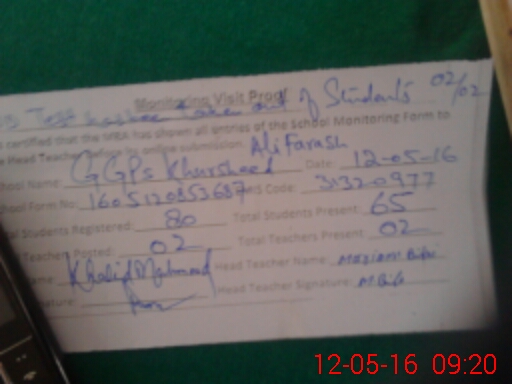 | EMIS Code: 31320977 | Name of School: GGPS KHURSHID ALI FRASH | |||