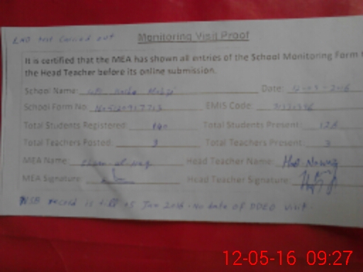 | Certified that this School was Inspected by the Undersigned MEA/DMO Today and the Information Stated Above is as Per Record. | |||||