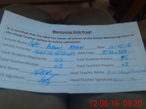 | Attendance Register | Head Teacher | MEA with School | Visit Proof |