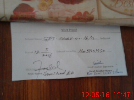 | Attendance Register | Head Teacher | MEA with School | Visit Proof |