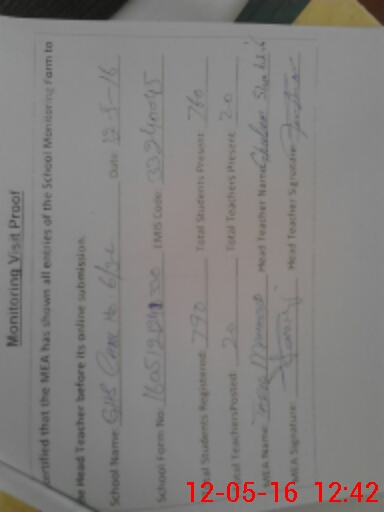 | Certified that this School was Inspected by the Undersigned MEA/DMO Today and the Information Stated Above is as Per Record. | |||||
