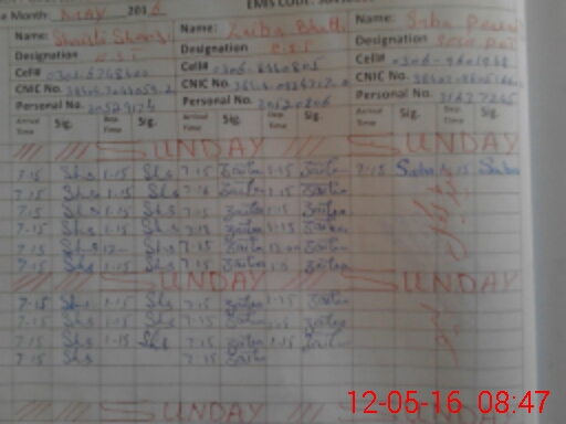 | CNIC | Full Name | Designation | R/C | Absence During Last Calender Month |