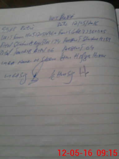 | Monitoring Date: 12-05-2016 | Start Time: 12-05-2016 08:36 AM | End Time: 12-05-2016 09:15 AM | Name of MEA: Re**** Mu**** Za**** | |