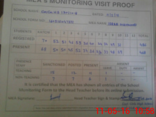 | Certified that this School was Inspected by the Undersigned MEA/DMO Today and the Information Stated Above is as Per Record. | |||||