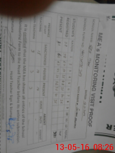 | Monitoring Date: 13-05-2016 | Start Time: 13-05-2016 07:35 AM | End Time: 13-05-2016 08:26 AM | Name of MEA: MU**** SA**** AK**** 13**** | |