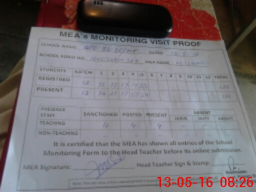 | Attendance Register | Head Teacher | MEA with School | Visit Proof |