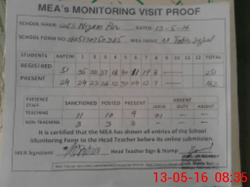 | EMIS Code: 36410194 | Name of School: GES NIZAM PUR, KABIRWALA | |||