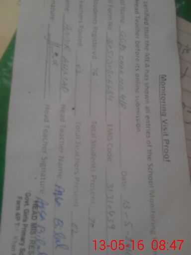 | Name: Aq**** Bi**** Designation: (School Headmaster's/Headmistress's) EST G Phone/Cell Number: 03**** |