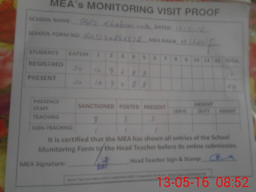| Certified that this School was Inspected by the Undersigned MEA/DMO Today and the Information Stated Above is as Per Record. | |||||