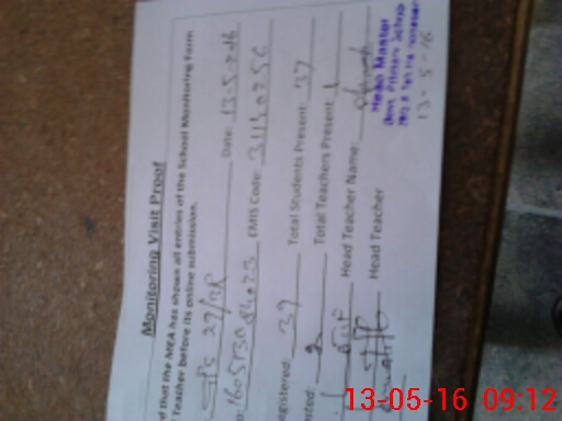 | Attendance Register | Head Teacher | MEA with School | Visit Proof |