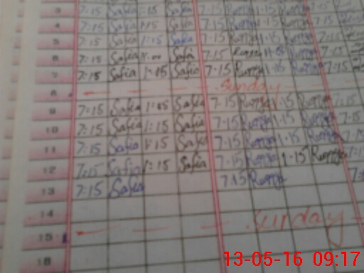 | Monitoring Date: 13-05-2016 | Start Time: 13-05-2016 08:54 AM | End Time: 13-05-2016 09:29 AM | Name of MEA: Z.**** M.Is**** | |
