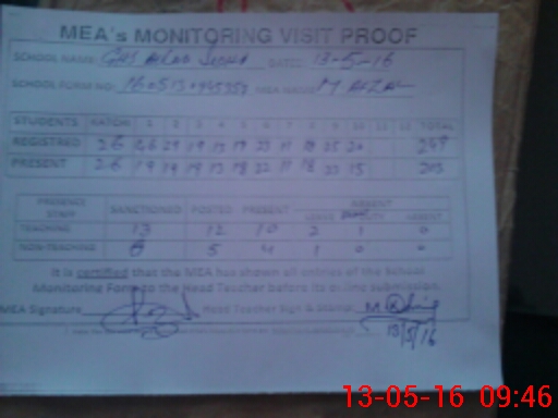 | Attendance Register | Head Teacher | MEA with School | Visit Proof |