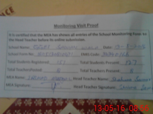 | Certified that this School was Inspected by the Undersigned MEA/DMO Today and the Information Stated Above is as Per Record. | |||||