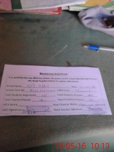 | Attendance Register | Head Teacher | MEA with School | Visit Proof |