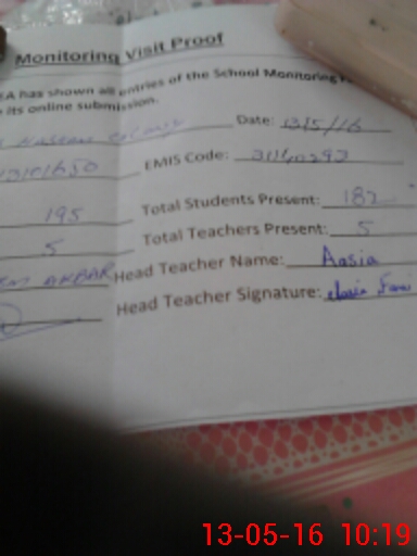 | Attendance Register | Head Teacher | MEA with School | Visit Proof |