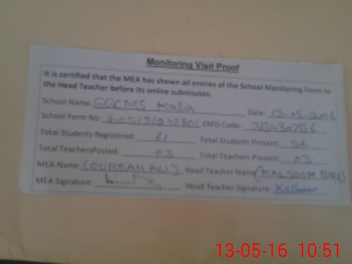 | Certified that this School was Inspected by the Undersigned MEA/DMO Today and the Information Stated Above is as Per Record. | |||||
