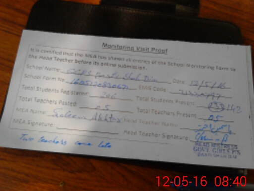 | Certified that this School was Inspected by the Undersigned MEA/DMO Today and the Information Stated Above is as Per Record. | |||||