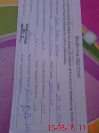 | Certified that this School was Inspected by the Undersigned MEA/DMO Today and the Information Stated Above is as Per Record. | |||||