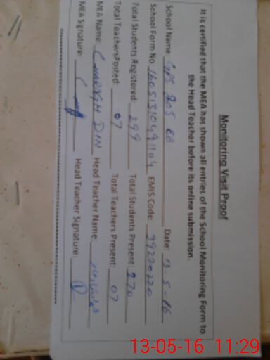| Certified that this School was Inspected by the Undersigned MEA/DMO Today and the Information Stated Above is as Per Record. | |||||