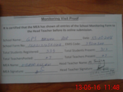 | Certified that this School was Inspected by the Undersigned MEA/DMO Today and the Information Stated Above is as Per Record. | |||||