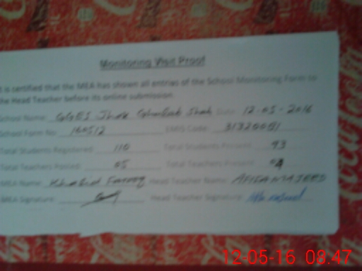 | EMIS Code: 31320081 | Name of School: GGES JHOK GHULAB SHAH | |||