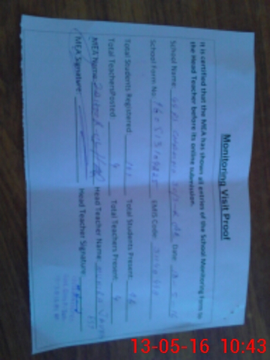 | Attendance Register | Head Teacher | MEA with School | Visit Proof |