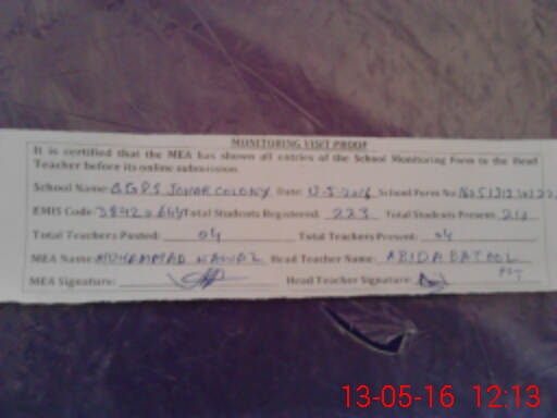 | EMIS Code: 38420644 | Name of School: GGPS JOHAR COLONY SARGODHA | |||