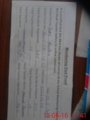 | Certified that this School was Inspected by the Undersigned MEA/DMO Today and the Information Stated Above is as Per Record. | |||||