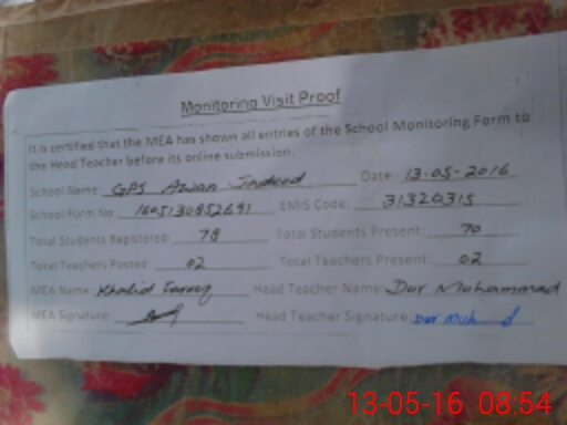 | EMIS Code: 31320315 | Name of School: GPS AWAN JADEED | |||