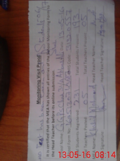 | Certified that this School was Inspected by the Undersigned MEA/DMO Today and the Information Stated Above is as Per Record. | |||||