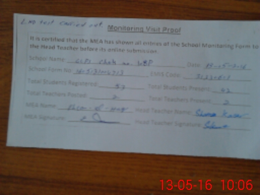 | Certified that this School was Inspected by the Undersigned MEA/DMO Today and the Information Stated Above is as Per Record. | |||||