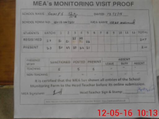 | Attendance Register | Head Teacher | MEA with School | Visit Proof |