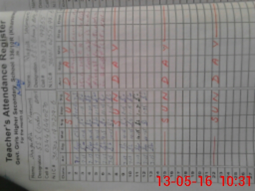 | CNIC | Full Name | Designation | R/C | Absence During Last Calender Month |