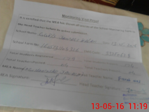 | Certified that this School was Inspected by the Undersigned MEA/DMO Today and the Information Stated Above is as Per Record. | |||||
