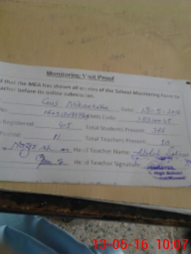 | Certified that this School was Inspected by the Undersigned MEA/DMO Today and the Information Stated Above is as Per Record. | |||||