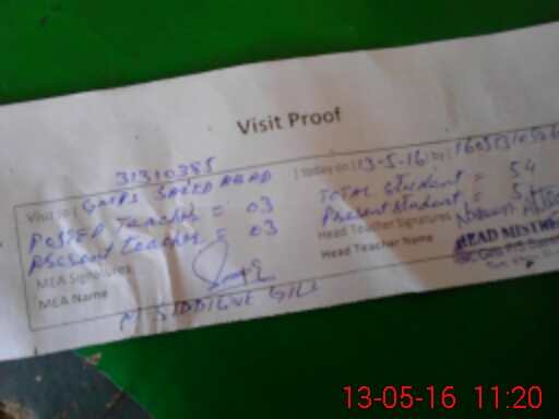 | Attendance Register | Head Teacher | MEA with School | Visit Proof |