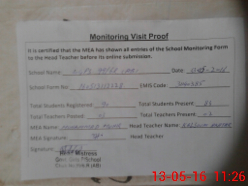 | Certified that this School was Inspected by the Undersigned MEA/DMO Today and the Information Stated Above is as Per Record. | |||||