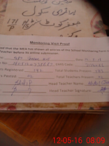 | EMIS Code: 31340166 | Name of School: GPS JAFAR KOT | |||
