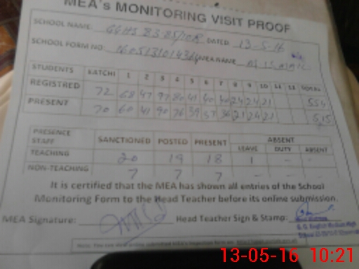 | Attendance Register | Head Teacher | MEA with School | Visit Proof |