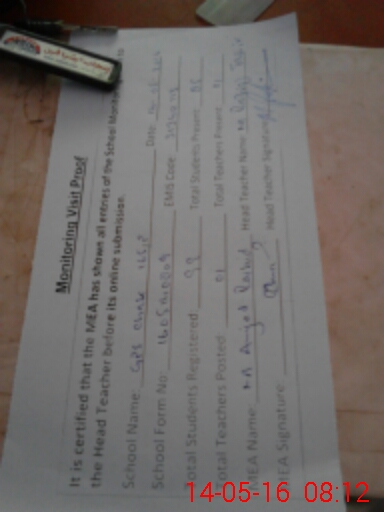| Certified that this School was Inspected by the Undersigned MEA/DMO Today and the Information Stated Above is as Per Record. | |||||