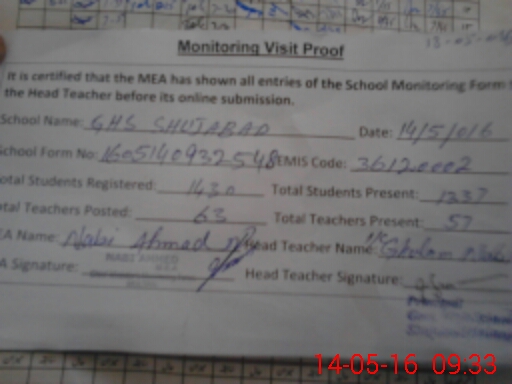 | EMIS Code: 36120002 | Name of School: GHS SHUJABAD | |||