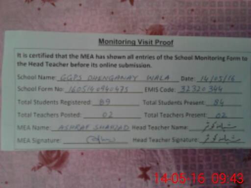 | EMIS Code: 32320344 | Name of School: GGPS DHENGANAY WALA | |||