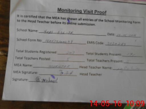| Attendance Register | Head Teacher | MEA with School | Visit Proof |
